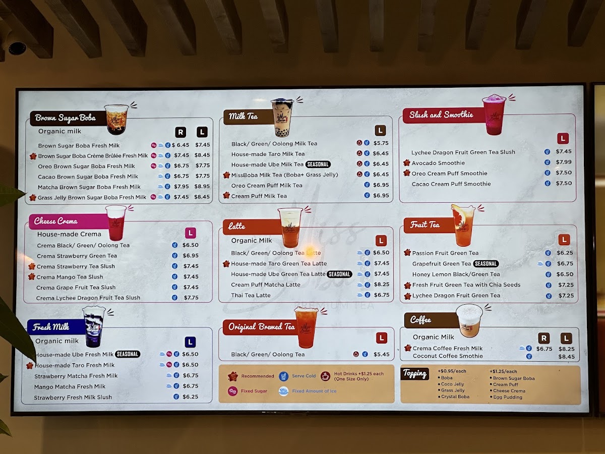 For those who crave freshness, the Fruit Tea lineup shines with vibrant, real-fruit infusions like Passion Fruit Green Tea and Lychee Dragon Fruit Green Tea. The inclusion of chia seeds enhances texture and health appeal. MissBoba’s menu is praised for authenticity, quality ingredients, and thoughtful sweetness levels, allowing for personalized experiences. The cozy ambiance complements the drinks perfectly, making every visit a delightful journey through taste and atmosphere.